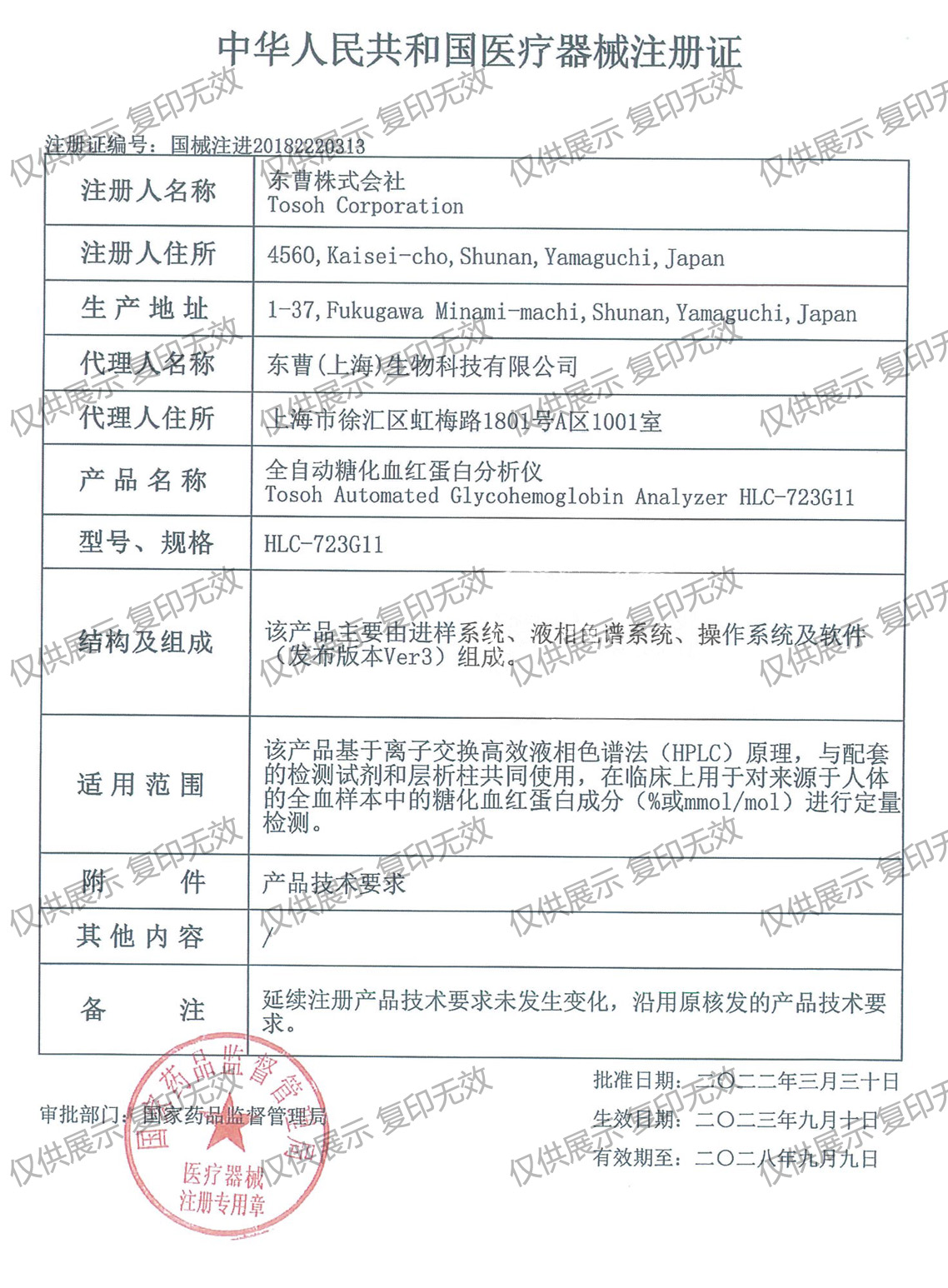 東曹全自動(dòng)糖化血紅蛋白分析儀HLC-723 G11 主要技術(shù)指標(biāo):