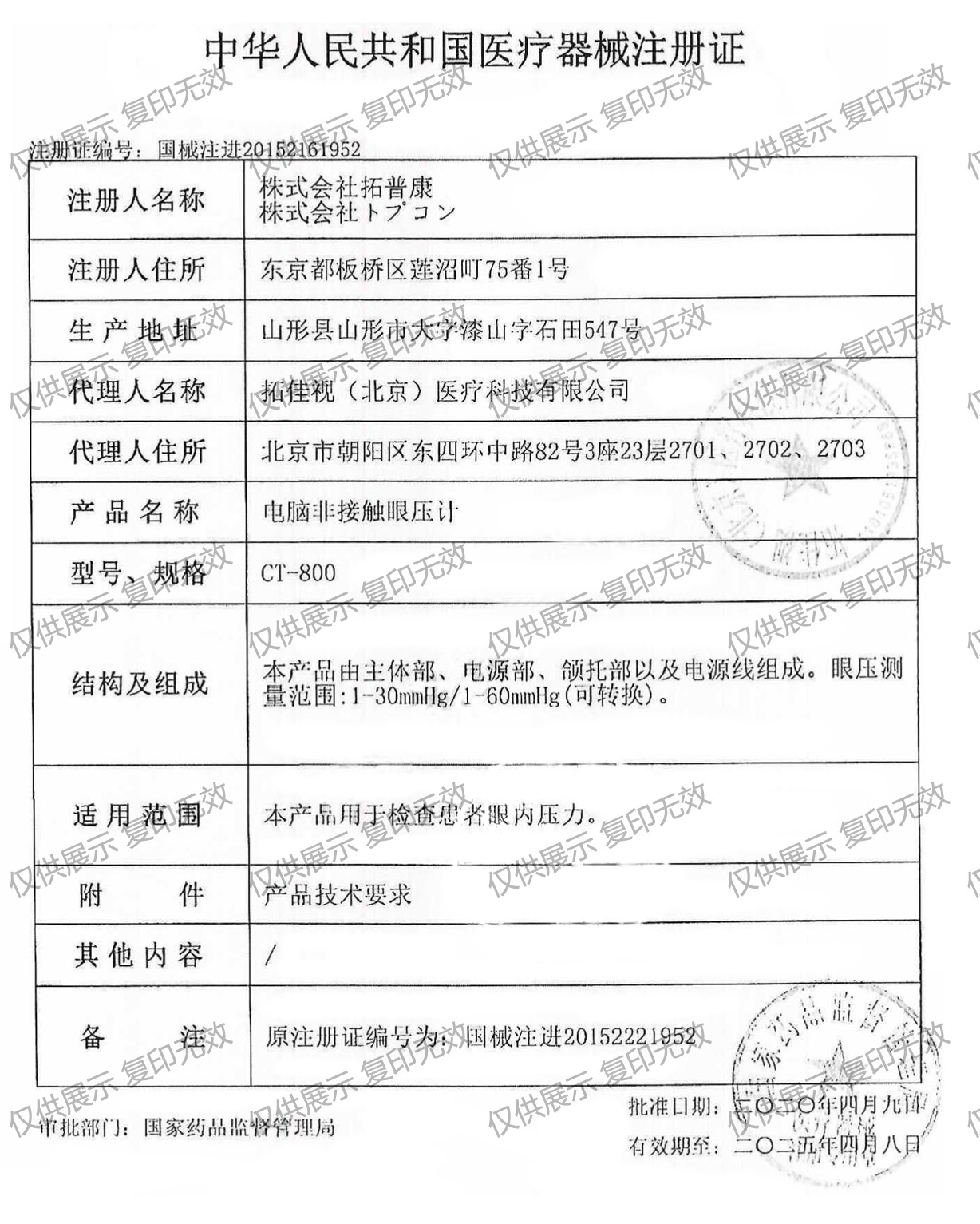 適用范圍:本產品用于檢查患者眼內壓力。