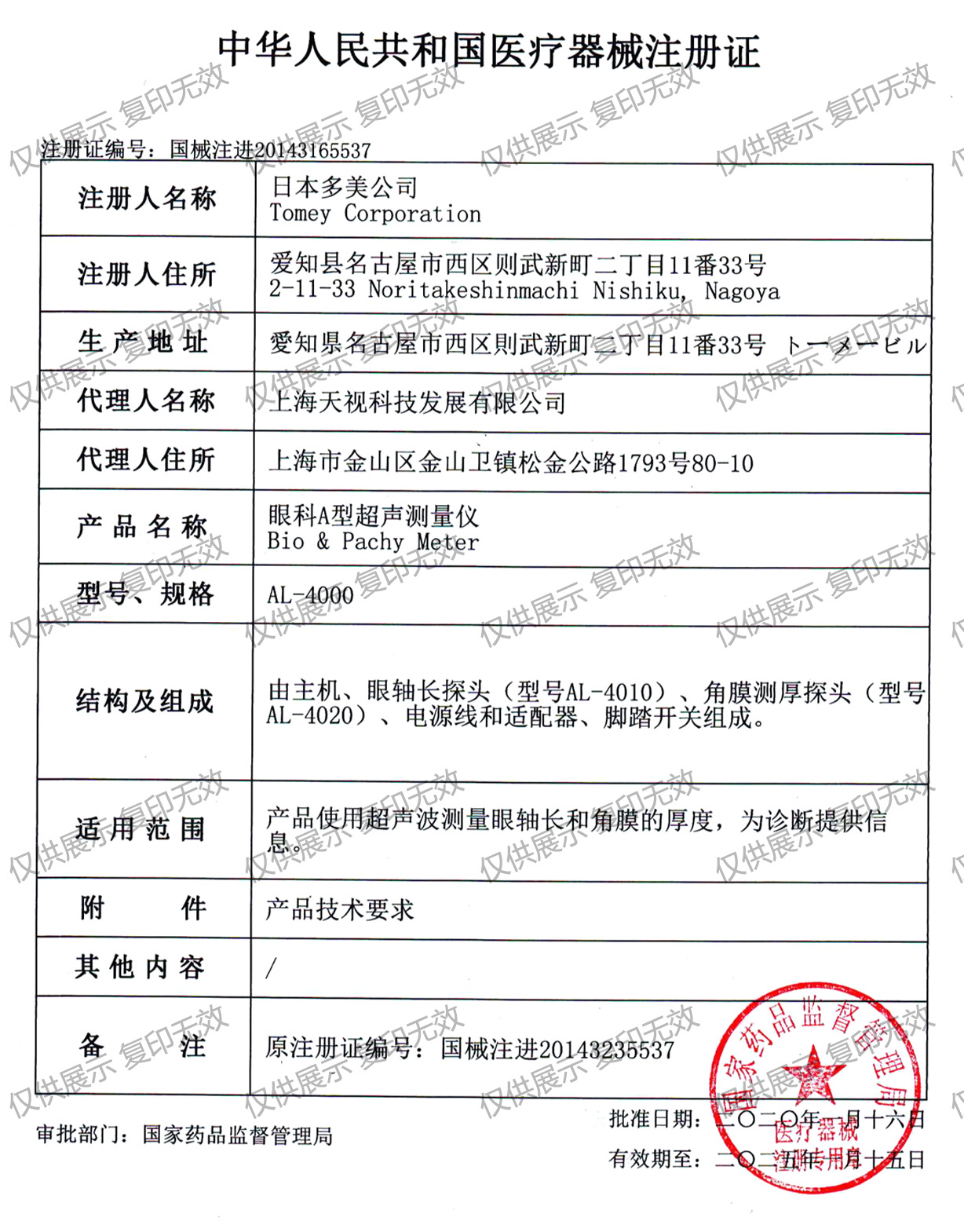 適用范圍:產品使用超聲波測量眼軸長和角膜的厚度,為診斷提供信息。