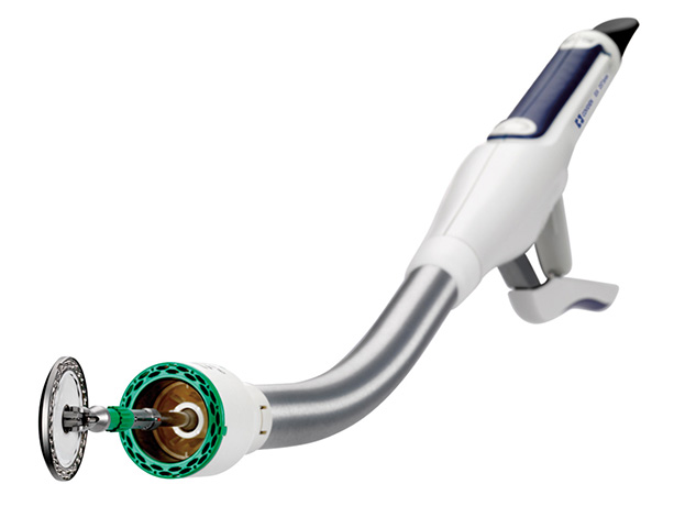 結構及組成:該產品主要由器身、握把、釘砧、縫釘、環形切刀和旋轉尾翼構成。端端吻合器的配件“經口釘砧輸送裝置“主要由輸送管和釘砧組成。一次性使用。