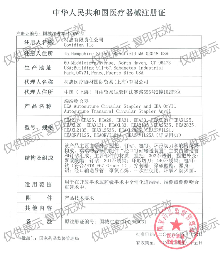 美國Covidien柯惠一次性端端吻合器