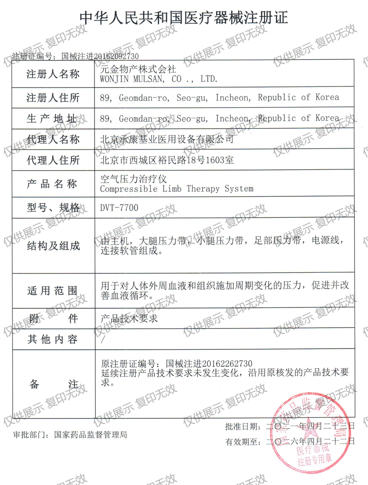 適用范圍:用于對人體外周血液和組織施加周期變化的壓力,促*并改*血液循環。