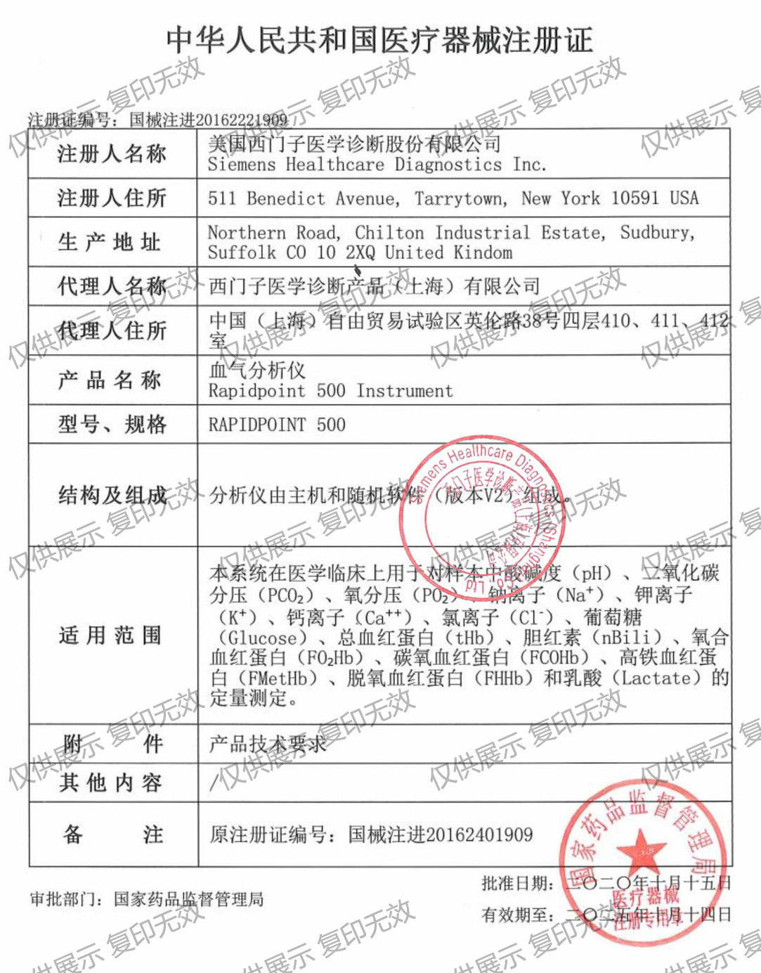 產(chǎn)品名稱:血?dú)夥治鰞x Rapidpoint 500 Instrument