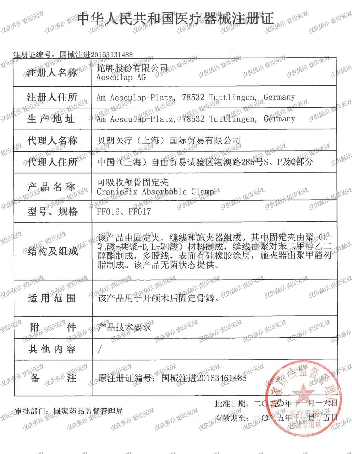 注冊證編號:國械注進20163131488