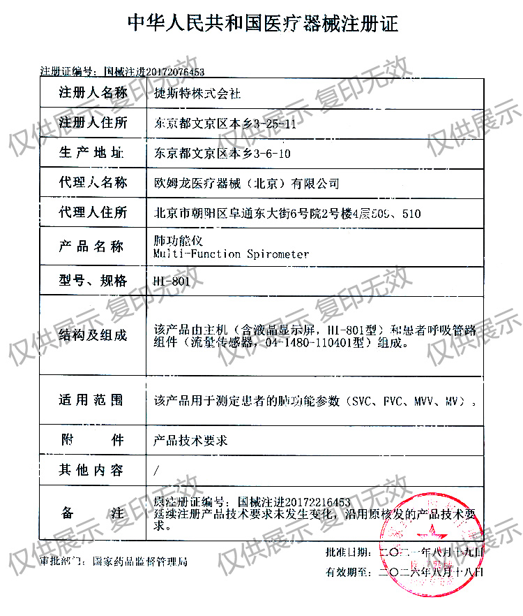適用范圍:該產(chǎn)品用于測定患者的肺功能參數(shù)(SVC、FVC、MVV、MV)。