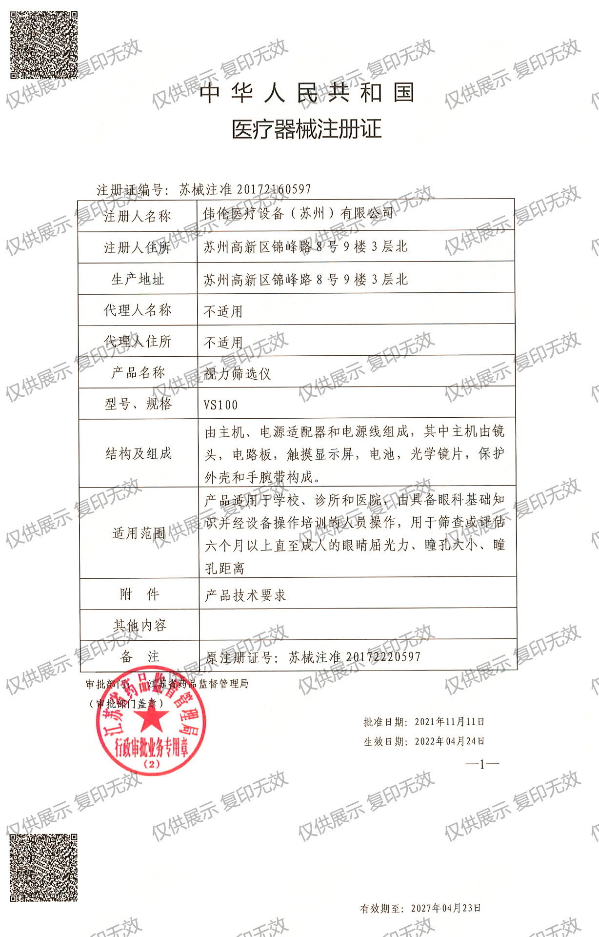 注冊證編號:蘇械注準20172160597