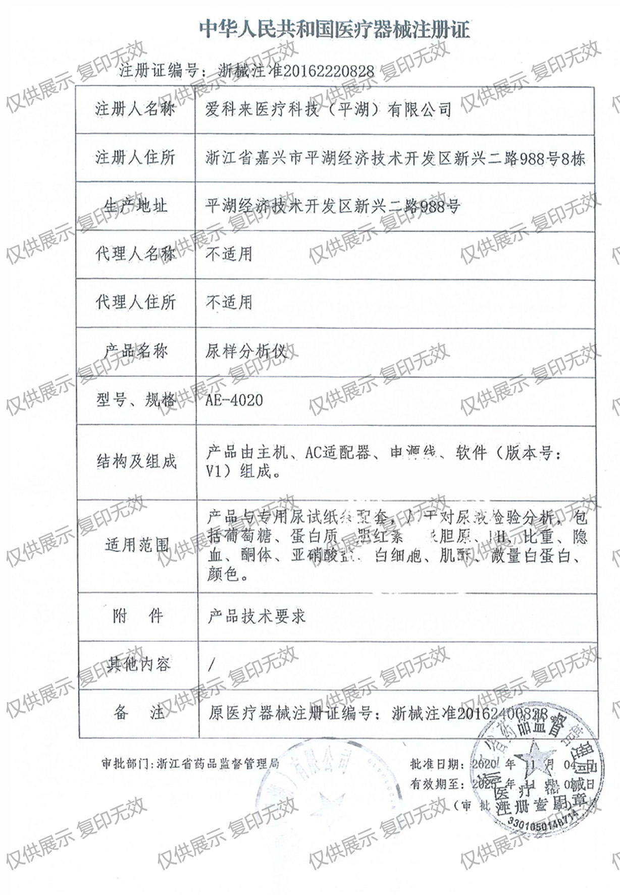適用范圍:產品與*用尿試紙條配套,用于對尿液檢驗分析,包括葡萄糖、蛋白質、膽紅素、尿膽原、PH、比重、隱血、酮體、亞硝酸鹽、白細胞、肌酐、微量白蛋白、顏色。